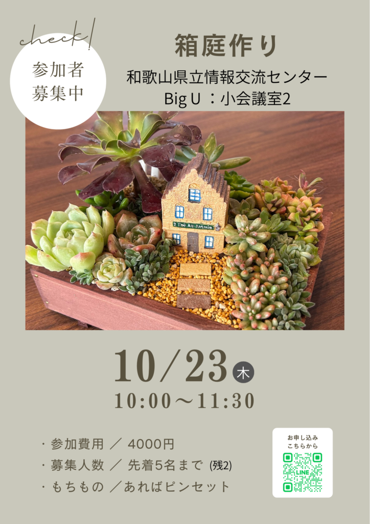 ということで、箱庭作りや多肉植物寄せ植え作りのワークショップを開催いたします。